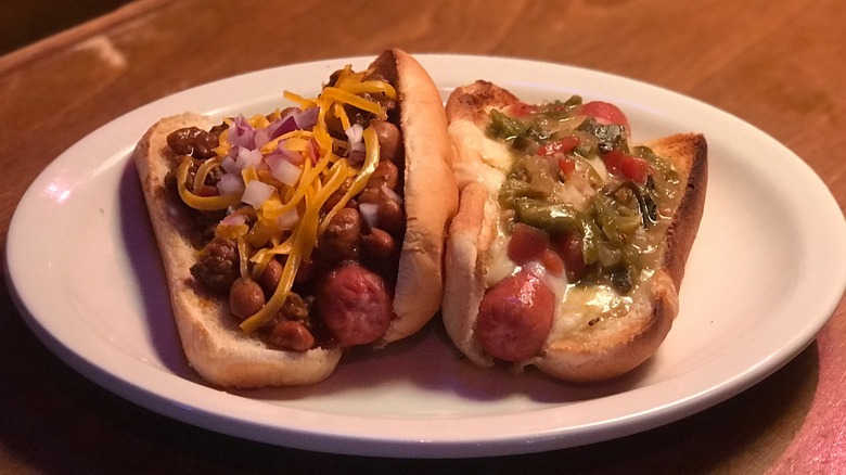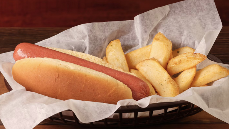 You can't get more American than an all-beef hot dog smothered in your choice of toppings. Oddly enough, hot dogs aren't American at all. They were introduced to America in the late 1800s by German immigrants, yet they've become a staple meal at every amusement park, baseball game, state fair, and carnival around the country. During the summer months, according to a report from The Nielsen Company, Americans consume roughly 7 billion hot dogs, and about 150 million of those are eaten on the Fourth of July alone. Hot dogs are so beloved that each state has their own unique way to consume them. So, it's no surprise that Texas Roadhouse offers simple ways to spice up its kids menu hot dogs.