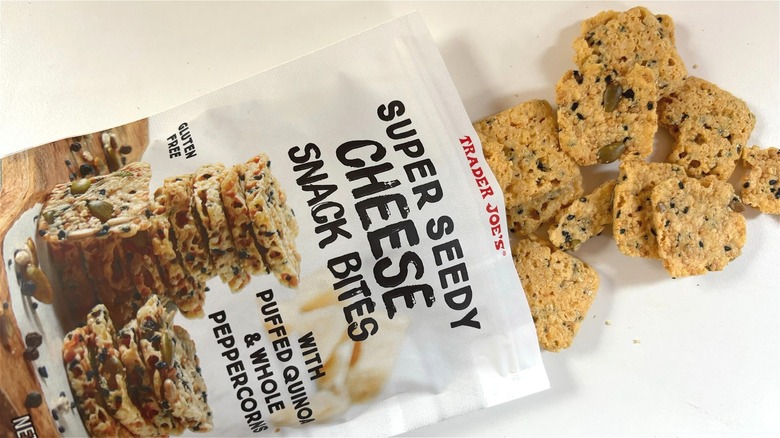Trader Joe's super seedy cheese snack bites took the intensity of its oven-baked cheese bites and diluted it a bit. These are a savory, flavorful snack that's not too overwhelming. I don't see everyone liking this snack though — the peppercorns can be pretty potent if you get a bite of one, and overall the flavor is still fairly sharp — but I do think it offers a nicer, mellower taste than the other cheese bites.