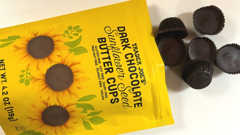 Trader Joe's dark chocolate sunflower seed butter cups have to get some recognition for being "free" from a lot of allergens, including gluten, soy, dairy, tree nuts, and peanuts — plus, they're vegan. I always appreciate when a company can make a palatable, allergen-friendly version of a food that's usually chock-full of allergens, and I suspect these sunflower seed butter cups are quite popular among the company's target audience. For me, though, they left something to be desired.