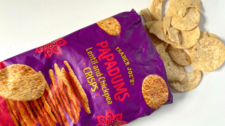 I didn't have much of an expectation for Trader Joe's papadums. The lentil and chickpeas snacks look like a pretty average, albeit quite crispy, cracker on the package. In fact, I suspect the bright, eye-catching package may have been designed as such to compensate for the very lackluster crackers. Though I didn't have any expectations for these crisps, they still managed to disappoint me in nearly every way.
