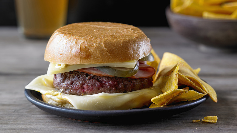 Flay likes to keep things simple when building his perfect burger and shared additional tips with Food Network for getting that perfect, golden brown light toast on a bun. According to Flay, about 10 seconds on a grill and about 30 seconds in a preheated broiler will do the trick. And, once the burger's texture is just right, he's been known to add even more crunch to his burger in the form of potato chips.