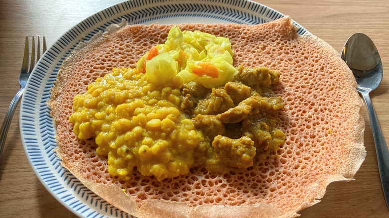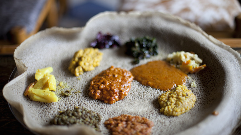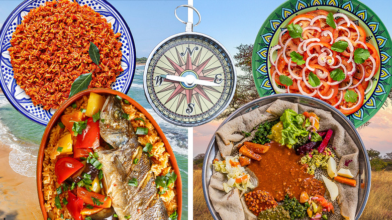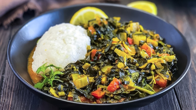 While rice and fonio (a grain you should pay attention to) are more heavily consumed in West Africa, East Africa has a heavier focus on green bananas and plantains. Professor Kerner points out that "the horn of Africa (Ethiopia/Eritrea) is an exception in that it relies primarily on the grain teff," an edible grass seed. West Africans consume starchy roots, as they grow easily in the climate and terrain. Eating millet, yams, sweet potatoes, and legumes is a quick way to load up on carbohydrates for energy and they are plentiful in the West. While corn is popular across the continent, East Africans tend to rely on it more frequently. Factors for which starches tend to dominate certain countries primarily depend on growing climates and accessibility, naturally. Once a crop is cultivated heavily in a culture, it tends to work its way into the cuisine for the long haul.
