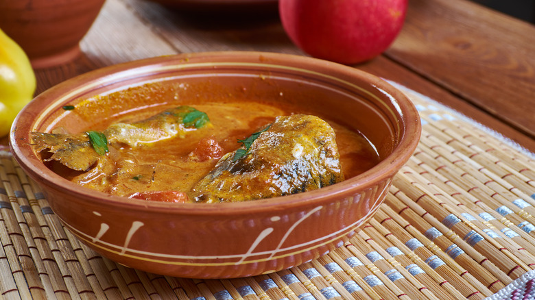 Like East African cuisine, West African cuisine varies from culture to culture and country to country. However, some major themes run deep in West African food. Unlike East African cuisine, West African fare tends to be meat-heavy, focusing mainly on goat and fish, with chicken close behind, along with pork. Beef is less popular due to its expensive nature. Grains like rice and fonio are popular to consume alongside the meat, as well as starchy root vegetables like taro and cassava. Stews and soups are common, especially those filled with aromatic spices, and rich tomato bases. Plant leaves don't go to waste in the West, as cassava leaves, sweet potato leaves, and black-eyed pea leaves are commonly cooked up and consumed.