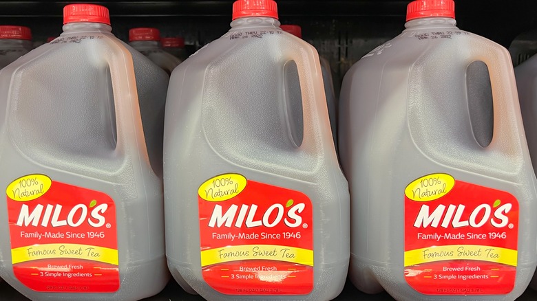 Look for Milo's in the cold section at your local market. Since Milo's straightforward recipe doesn't include any sort of stabilizers, these packages are kept in chilled areas at grocery stores. When served in ice-filled glasses or a pretty glass pitcher and garnished with slices of lemon or sprigs of mint, your guests may not suspect that you took the shortcut to hosting and bought this item from a shop. Plus, once a jug is stocked in your kitchen, you can not only enjoy refreshing glasses of sweet tea but also use it in recipes, like adding sweet tea to barbecue sauce.