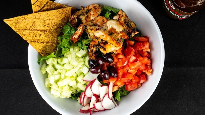 Don't forget to order standout items like the Zabaadi bowl, which includes falafel with kefta and chicken kebabs, served over rice or lettuce, and topped with salad, hummus, red cabbage, pickles, and tahini sauce. The chicken shawarma bowl seems to be another popular choice, as is the steak kebab wrap and the mixed grill entree.
