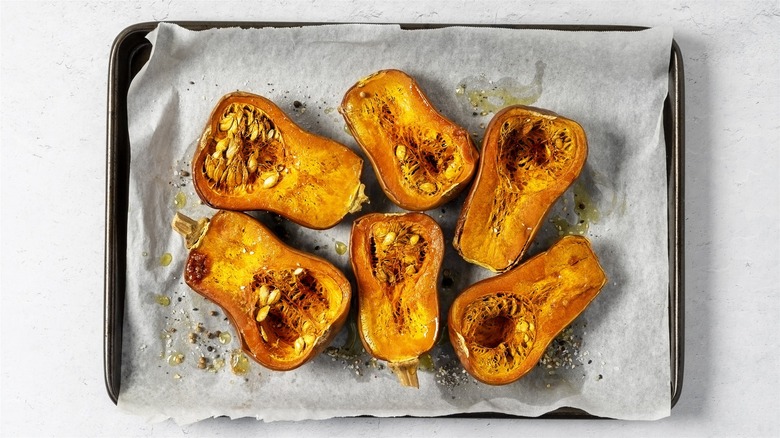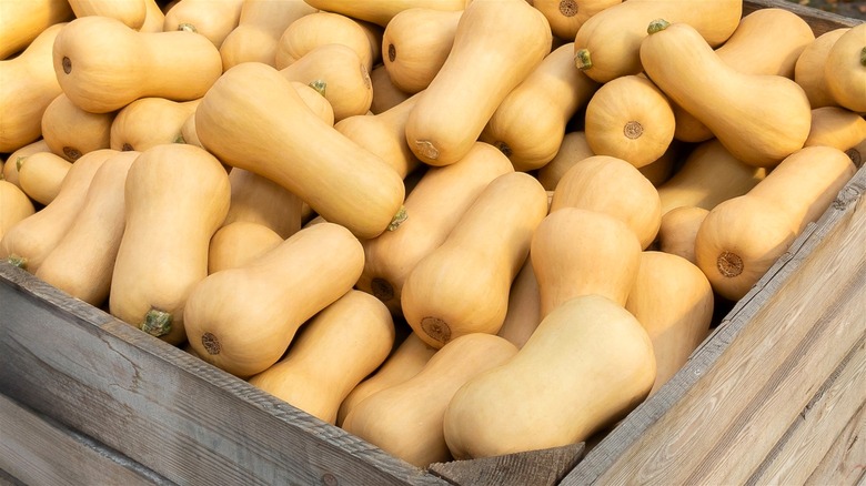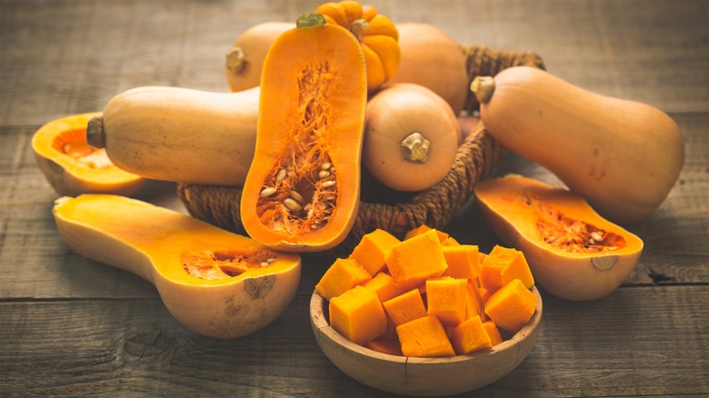Although winter squashes are prized for their ability to stay fresh for months, they, too, can eventually spoil, even under perfect storage conditions. Regular checks using all your senses are crucial to ensure they're still safe to eat. You'll notice the first signs of trouble when you pick up a bad squash. If it feels lighter than you'd expect, it might be past its prime. Sensing soft or slimy spots with your fingers could indicate it's already rotting inside. Next, give it a gentle tap. Does it sound hollow? If so, it's probably drying out inside from aging. And while many of us can relate to that sentiment, for butternut squash, it signals the end of its usable life.