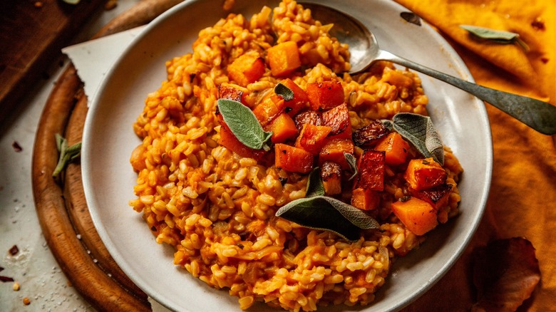 Just as roasting butternut squash is the favored cooking method, so is turning it into a creamy soup. But we're not here to tell you how to do that — you probably already know! Instead, allow your imagination to run wild and think of the numerous creative ways to use butternut squash that aren't soup. Those deeply caramelized roasted cubes will make a wonderful addition to risotto, chili, and curry, while bigger slices will contribute sweetness and heartiness to sandwiches. A small amount of leftover raw butternut can be pulsed to create a low-carb fried rice alternative, or minced and cooked with other veggies to make pastry filling.