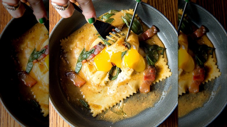 If you ever find yourself near the quaint fishing town of New Bedford, consider making a stop in the nearby town of Fairhaven. The town is home to Bocca, a swanky Italian joint that doesn't skimp out on the flavors. Besides an array of tantalizing pizzas and fresh salads, you'll also get a great smattering of pasta options — with some elevated twists. For example, you can order a Sunday favorite — the lasagna — but add some Wagyu meatballs to it. Or, order the butternut ravioli, which is completed by a slightly-sweet medley of sweet maple cream sauce, roasted squash, and cinnamon.