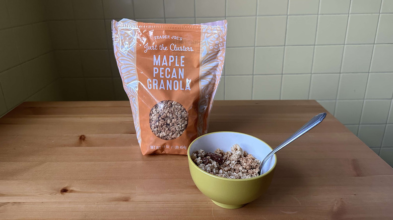 The idea to make "just the clusters" granola is one I fully get behind, and I'm grateful for whoever at Trader Joe's dreamed it up. They're obviously the best part of any granola mix, so why shouldn't they comprise the whole thing? That's why the texture of Just the Clusters Maple Pecan Granola is so fantastic. Those clusters, which are made of pecans and rolled oats, have a delightful crunch to them. They're chunky and nutty and undeniably superior to the texture of most other granolas out there.