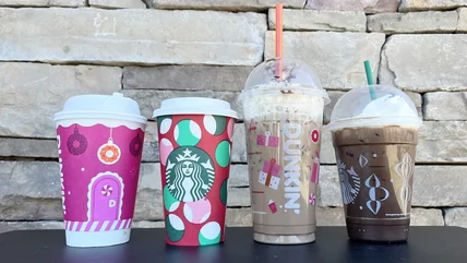 An invigorating sip of a peppermint mocha signals that the holidays are creeping up and that the end of the year is near. Much like how the pumpkin spice latte signals the start of autumn, the peppermint mocha feels like winter and conjures festiveness with each sip. It tastes comforting and nostalgic, but more complex compared to other sweet drinks. Dunkin' and Starbucks, two popular coffee companies, each have a spin on the beverage that allows customers to indulge in a minty fresh sip. But how do they hold up against each other?