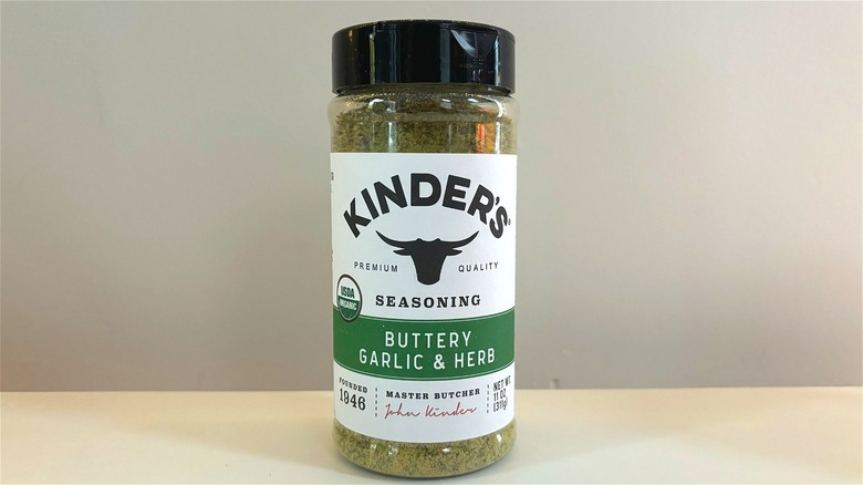 Unfortunately, Kinder's Buttery Garlic & Herb seasoning took the bottom spot on this list. Though I definitely didn't dislike the blend, one of the selections had to come in last, and this buttery blend drew the short straw. I wonder if the company has been working on this blend — its website has a couple of garlic herb seasonings as well as a buttery garlic seasoning, so it seems possible that it's still trying to hone in on the correct balance here. Unfortunately, this seasoning didn't quite nail it.