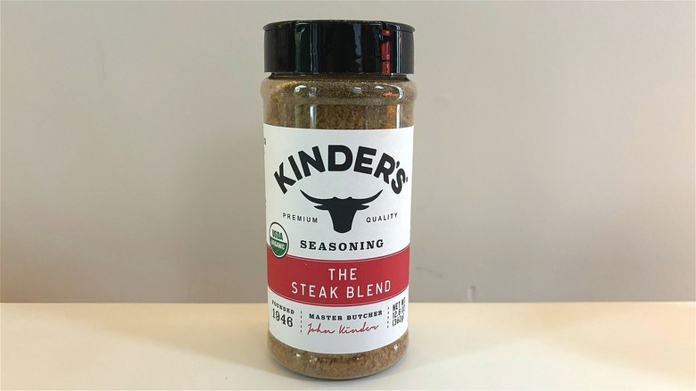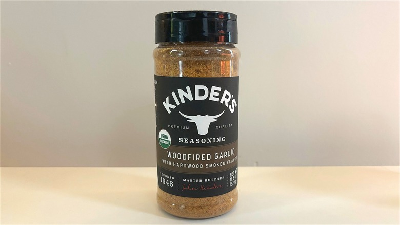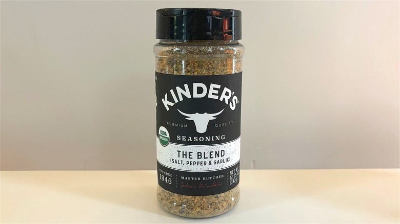 Kinder's The Blend seasoning is less mysterious than the name makes it sound. This simple seasoning is possibly the most wide-reaching in terms of its uses, which is one reason it got as high of a spot on this list as it did. It would be a great seasoning to use if you're feeding a crowd and need to ensure your dish is palatable to even the pickiest of eaters. In fact, I wouldn't be surprised if you use some version of this blend at home already — after all, it's just salt, pepper, and garlic.