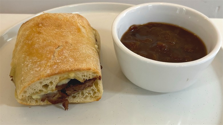 It's no news that Panera is constantly researching and developing new recipes to present to hungry customers around the nation. The chain seems committed to innovation, and I regularly see surprise product drops, like its recent autumnal release of a new chili and soup to kickstart cozy season. If you thought that was all the chain had up its sleeves for winter of 2024, think again. On November 12, 2024, Panera launched two new menu items: a French Ciabatta Dipper and a Spicy Chicken Ciabatta Dipper, each of which includes a sandwich and a bowl of soup to dip it in.