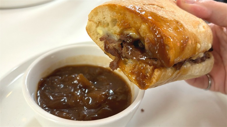 Panera is offering two different Ciabatta Dippers on its menu, but I'm hoping the chain eventually expands to offer more. Its French Ciabatta Dipper features a ciabatta sandwich with marinated steak, melted provolone and Asiago cheese, and a drizzle of garlic aioli, accompanied by a bowl of its Bistro French Onion soup. The Spicy Chicken Ciabatta Dipper is another ciabatta sandwich, this time with grilled chicken, melted provolone cheese, and a creamy salsa verde dressing, served alongside the chain's Creamy Tomato soup. The idea is that the sandwich and soup will be enjoyed together as a pair. As the release is coming on the heels of the most pivotal menu transition in the company's history, it certainly seems like a step in the right direction.