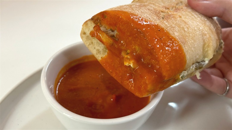 Aside from the obvious differences in each dipper's flavor profile, they also aren't quite comparable when it comes to pricing and nutrition information. A full-sized French Ciabatta Dipper comes in at 1,130 calories and costs $12.99 at my local Panera, while a half is 580 calories and costs $10.59. The full-sized Spicy Chicken Ciabatta Dipper is 910 calories and costs $10.99, and the half is 510 calories and costs $7.99. Given that the price difference between the full and half sizes for each isn't very substantial, if you want to give the dippers a try, I recommend grabbing a full and sharing it with a friend.