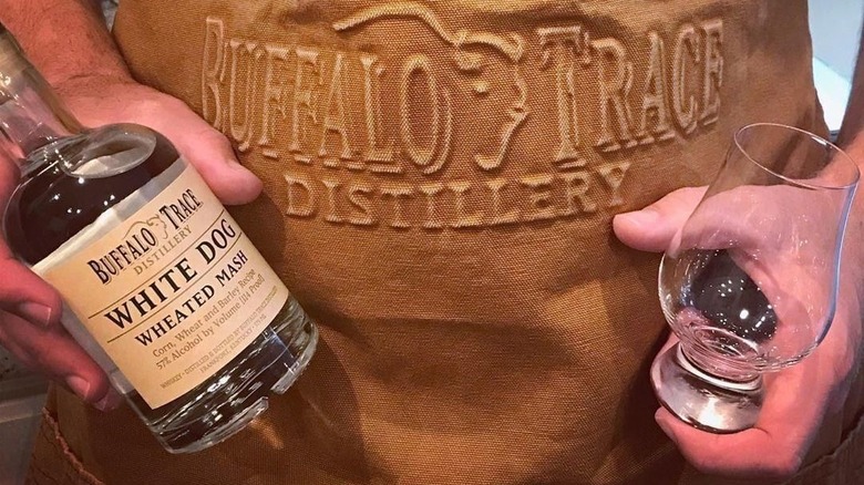 Buffalo Trace's flagship bourbon wasn't the only bourbon recommended for a delectable dessert sauce. Kenneth Gray says that the distillery's White Dog "is a great wildcard bourbon." Unlike all the other bourbons on this list, the White Dog is an unaged bourbon that's bottled straight from the still. Since the liquid never touches a charred, oak barrel as is customary when making bourbon, the spirit doesn't have the opportunity to extract any color or flavors from the wood which is why this spirit looks more like a gin or vodka than a whiskey.