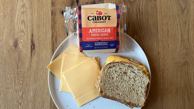 When I took my first bite of Cabot's American cheese, I was immediately struck by how cream-forward it was. There is substantially less bite to the flavor because of how prominent the milk taste is, but that isn't necessarily a bad thing. It depends entirely on your taste buds. Cabot's cheese is decidedly cheesy, which is a very important trait for American cheese to have — although it doesn't have much by way of flavor.