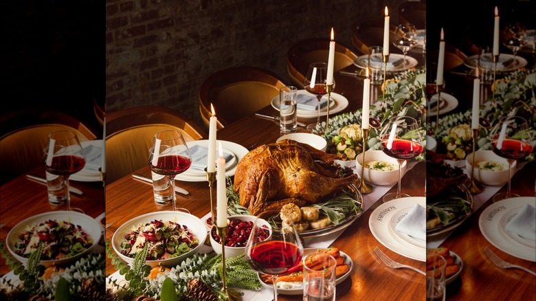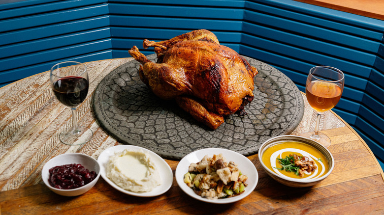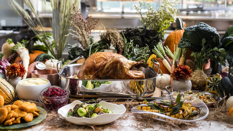 Thanksgiving has a lot going for it as a holiday. Sure, it's a sign that the autumn season has finally arrived, and it's a great excuse to get together with loved ones. But let's be honest — it's really about the food. A good Thanksgiving spread can leave guests daydreaming about perfectly roasted turkey, wonderfully seasoned stuffing, and light-as-air mashed potatoes for days. However, in order to get this fabulous feedback, someone has to actually cook the meal in question. Whether you're cooking for a large group or just a handful of friends and loved ones, it's a heavy lift. For Thanksgiving 2024, we say keep your cookbooks on the shelf and leave the cooking to the professionals.