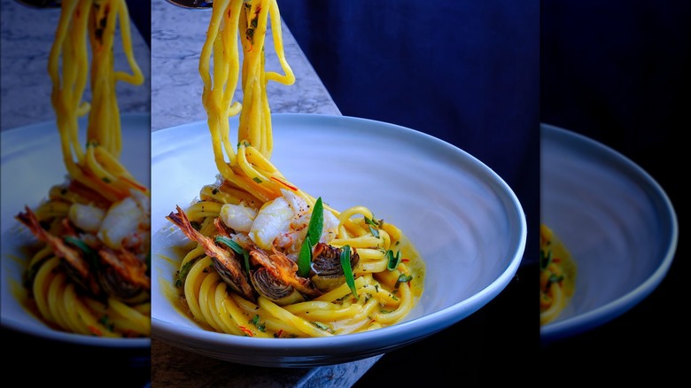 Starters include a petite raw seafood tower, yellowfin tuna tartar, and steamed mussels in a red curry infusion. A roasted organic turkey with stuffing, mashed potatoes, cranberry compote, Brussels sprouts, and gravy is available as an entree, but if seafood is more your jam this year, you've got options. Faroe Island salmon or steamed black bass are both delightful choices, as well as the Dungeness crab risotto. The star is the longevity noodles, topped with a 1½-pound glazed Maine lobster, green chili, and ginger. Round out your meal with dessert — a choice of apple pie, pumpkin pie, or pecan pie are all available to end this memorable dinner on a sweet note.