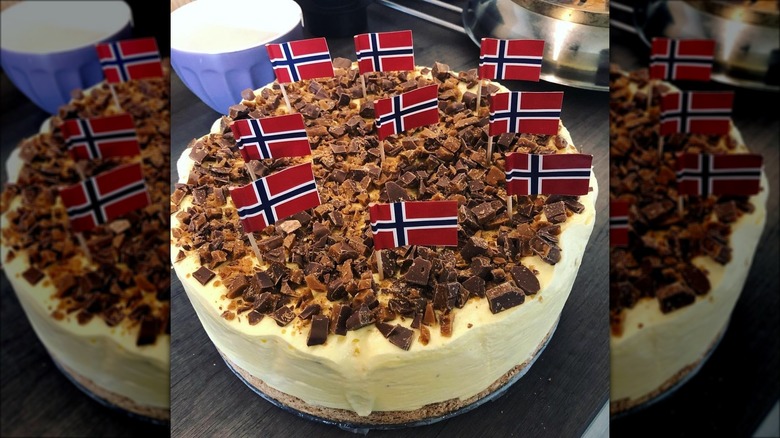 American ice cream cakes are put to shame when compared to the Norwegian Daimiskake. This cake features a nutty macaron base that first requires eggs and sugar to be beaten into a meringue. Nuts (like almonds or hazelnuts) are added to this batter before it's baked. This lays the foundation for a thick layer of ice cream that may offer tasting notes of vanilla, coffee, or even an alcoholic beverage like whiskey or cognac.