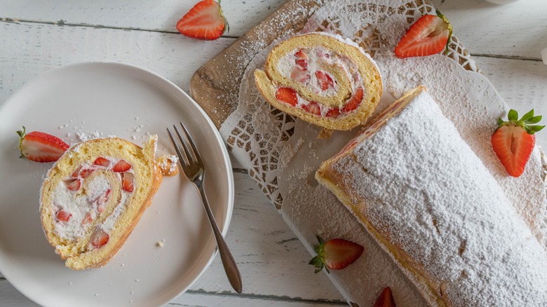Norwegian rullekake is a sponge cake, typically with a filling of sweet jam and a cooling layer of whipped cream, all rolled into a neat log. The jam can be of any flavor, such as strawberry or raspberry. Nevada Berg recommends preparing a homemade lingonberry compote, if possible. Unfortunately, lingonberries aren't always easy to find in the U.S., so she tells us that, "One can always substitute lingonberries with cranberries or other fruits in season in the local area." If you're ready to try your hand at baking rullekake, make sure to check out our guide to the most affordable jelly roll pans for your price range.