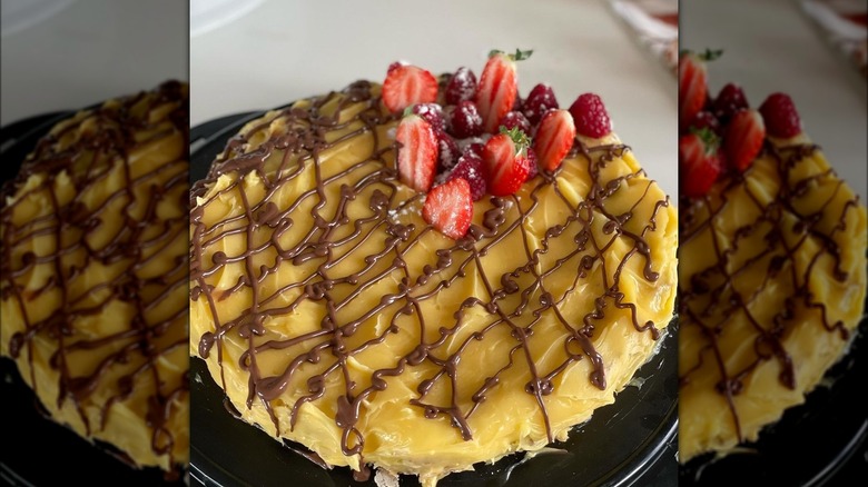 The good news, if you're a home baker, is that this cake is very easy to master, giving you all the more reason to celebrate your success by slicing another piece. Just make sure to properly whip your eggs into peaks for the base and not let the eggs curdle when making the custard. For a perfectly thick custard, Nevada Berg recommends allowing the egg mixture to simmer on the stovetop for a short while, making sure not to stop stirring.