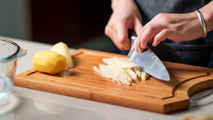 Fried, mashed, scalloped, whatever way you like them, potatoes are one of the most popular vegetables for a reason — they're the perfect canvas for your favorite comfort flavors and textures. But when it comes to preparation, they can be annoyingly sticky due to the starches that are released when their cells break down. We discovered a clever, cheap knife hack to keep potato slices (and any other clingy food) from sticking when cutting.