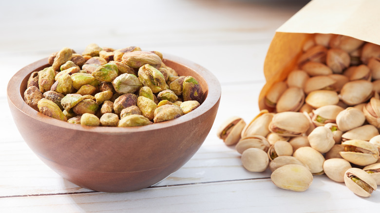 Pistachio oil works best in recipes that allow its herbaceousness to shine. That's why you may want to try adding it to a vinaigrette and serving it on a salad. It pairs exceptionally well with bland meats, like chicken, as well as some types of cheeses, like Parmesan, goat, and ricotta. Combine your protein with greens, cheese, and a pistachio oil vinaigrette and you have a formula for success.
