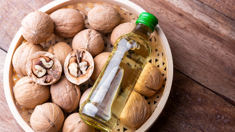 Unlike many of the other finishing oils on this list, walnut oil can be used for more than just savory dishes. You should always have this oil in your pantry because you can drizzle it on everything from roasted root vegetables to bread. Rich and flavorful beets, turnips, and carrots would be a great complement to the nutty and buttery walnut flavor. You could also add it to all of the dishes where you'd normally put walnuts. For one, you may consider adding walnut oil to banana bread to replace some of the butter; the flavor would mesh well with the sweet fruit and other additions like chocolate chips or autumnal spices.