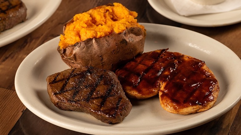 News on chain restaurants may be centered around the struggles of big longtime favorites like Red Lobster or the imploding TGI Fridays, but Texas Roadhouse has bucked the trends. It's not just the fastest growing steakhouse in America — a 2023 report for Brand Finance said it's the fastest growing restaurant brand in the world. According to Food & Wine, the 2024 Technomic Top 500 Chain Restaurant Report found that sales for Texas Roadhouse grew more than 15% in both 2022 and 2023, even as many casual-dining competitors saw declines around the country. With over 700 locations as of this writing and plans to reach 900 in the coming years, the steakhouse has become one of the 20 biggest food chains in the U.S., period. Pretty amazing for a business selling a higher-end item like steak at a time when many people are cutting back on spending. And while there are always plenty of reasons for a company's success, the secret for Texas Roadhouse appears to be a mix of unmatched value and high customer satisfaction.
