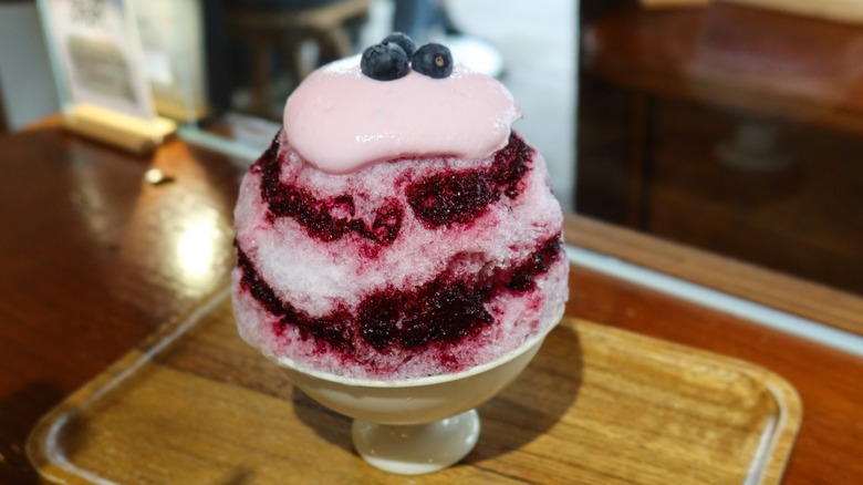 Taiyaki's popularity has also evolved into other dessert variations, namely with ice cream. The fish-shaped cake is used as the base, like a cone, then topped with soft-serve ice cream. Ice cream flavors can be traditional like vanilla and chocolate, or flavors inspired by Japanese cuisine, including black sesame and matcha. These highly-photographable desserts can be topped with things like sprinkles, mochi, and M&Ms.
