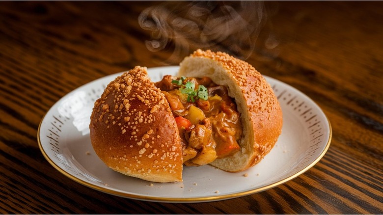 Kare Pan translates to curry bread in Japanese. This popular snack is made from bread dough filled with a Japanese curry, usually made with meat. It also has one more defining feature: it's deep-fried. The filled pastries are covered in Japanese-style panko crumbs and fried until the pastries are golden brown and crispy.