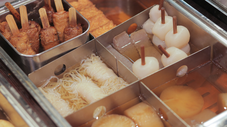 Japan has plenty of one-pot dishes. Oden is among those. The term oden can mean several things in the world of Japanese cuisine but when it comes to the street food version of oden, it refers to a mixture of ingredients boiled together in a pot of broth. Classic oden will include fish cakes and vegetables. This version of boiled oden is rumored to have its origins around the late 19th century or early 20th century when a mix of ingredients was boiled together. The result? A tasty dashi soup that is easy to serve streetside. And if you're wondering what exactly dashi is, it's a stock rich in umami flavor that is used in many Japanese dishes.
