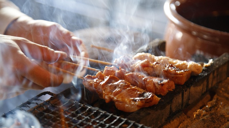 Yakitori has a rich history. While the street food's exact origins aren't entirely clear, some records agree that street stalls started selling yakitori in the 1880s and 1890s. At the time, chicken was a prized commodity so instead, yakitori was made by grilling the remains and innards of the chicken on a stick. Over time, an entire culture has grown around yakitori, as this type of grilled cooking has been popularized. Beyond chicken and other meats, vegetables, fish, and tofu are all available.