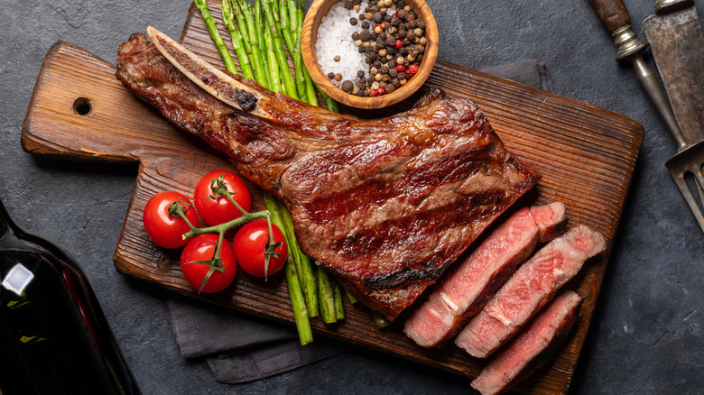 A ribeye steak is hard to beat when it's cooked the right way — nicely seared on the outside and juicy perfection on the inside. Cut from the rib roast (the source for prime rib), ribeye steaks are known for their beefy flavor and beautiful marbling that keeps them moist and tender. They are steakhouse favorites with good reason and one of the most popular cuts of steak regardless of the cooking method. Award-winning chef Nicole Brisson, Executive Chef & Partner of Brezza and Bar Zazu in Las Vegas, gave us some tips to keep in mind when cooking ribeye steaks at home for professional steakhouse results. Chef Brisson knows her way around a steak, and the award-winning, 2020 James Beard semi-finalist even has her own line of dry-aged steaks, available for purchase at her popular Italian restaurant.