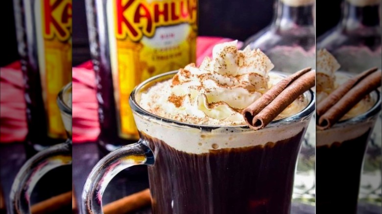 Packing two kinds of booze renders this coffee order a drink intended for more mature palates, and while the finished glass doesn't necessarily offer spices as part of the ingredient list, you can top the drink with a sprinkle of warming cinnamon and add some cinnamon sticks to create the effect. You can also use traditional Mexican café de olla as the drink's base to create a more nuanced (and authentic) spiced flavor. Given the presence of peppery tequila, the cocktail is sure to pack a flavorful wallop regardless.