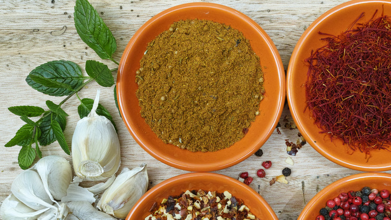 You may have enjoyed a za'atar seasoning blend incorporated into Middle Eastern cuisine at a restaurant or even bought a jar to keep in your spice pantry, as it's become increasingly popular in the United States. Za'atar is a mix of complex spices and herbs, including thyme, marjoram, oregano, sumac, and cumin. The addition of ground sesame seeds makes the mix unique. The quantities and spices can vary, omitting some spices and adding others like coriander to the mix. Chef Mohamed Yakat describes its purpose: "Za'atar is used to enhance multiple dishes with its tangy, citrus, and nutty flavor." It's wildly popular in North African cuisine, and za'atar has many uses.