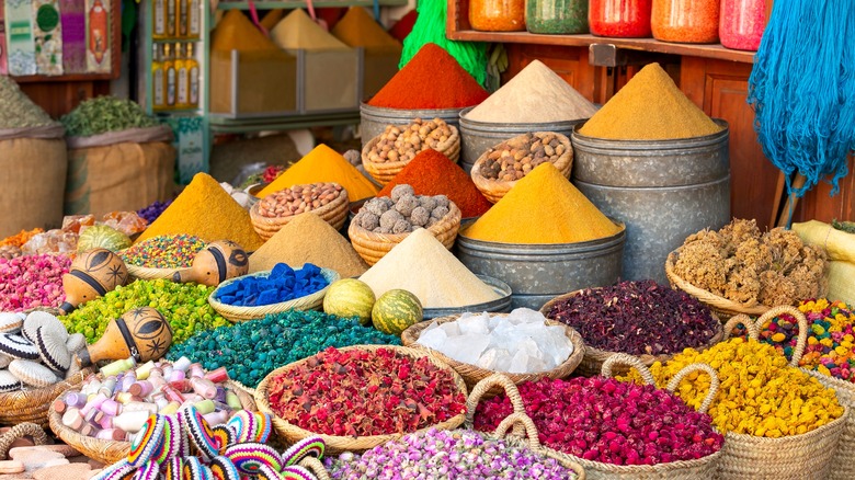 People come from all over the world to buy spices at Morocco's markets. Those heaping peaks of vibrant yellow, sunset orange, and toasty red can make for much more than just a beautiful picture. Because of its location, Morocco is a hub for spice trading across continents, and the cuisine reflects it. Tan-tan is a mixture of spices from around the world, made and used heavily in Morocco.