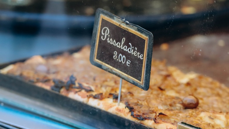 Pissaladière is essentially a savory tart that hails from the coastal city of Nice. With a storied past, the umami-rich recipe can be traced back to a niçoise condiment called pissalat, made from salted and fermented anchovies. Yet, while fishy filets do play a major role in the recipe, pissaladière doesn't only contain anchovies. The crisp and focaccia-esque tart also includes sweetly caramelized onions and briny black olives. In addition to increasing depth, these ingredients work to tame the anchovies' umami and salty edge, creating a more balanced bite. Not to mention that they also amp up textural diversity and boost visual appeal.