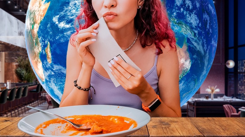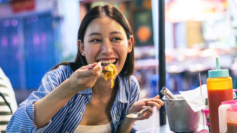 We'd be surprised if you haven't at least once had someone ask you to stop chewing so loudly, to chew with your mouth closed, or to quell whatever other noisy eating habit you may have. We're not sure why eating loudly is considered rude in the U.S. — perhaps it's simply that loud eating can be distracting from table conversation, or maybe you regularly dine with someone who suffers from misophonia. Regardless, eating quietly has become a pretty universal unspoken rule in the states, but in other countries, not making noise is one of the worst things you could do at the dinner table.