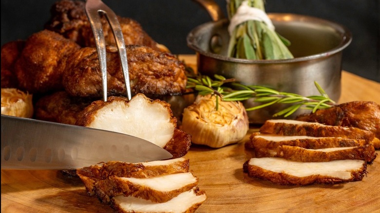 Do you prefer a plant-based Thanksgiving experience? With two locations in West Hollywood and Calabasas, Crossroads Kitchen offers a vegan alternative to your standard Turkey Day lunch or dinner. The four-course menu costs $80 per person and is available from noon to 6:00 p.m. Start with a celery root soup and a Waldorf salad before diving into the entrees. Main course options include a breaded scallopini or roasted lion's mane mushrooms with gravy. The mains are also served with an array of sides like mashed potatoes and stuffing.