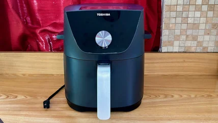When asked to test and review the Toshiba Air Fryer, I was expecting a solid experience, and that is exactly what happened. Toshiba has been innovating since 1875, when it created Japan's first incandescent light bulb, and has since become a well-known and well-respected name in home appliances and consumer electronics. The Toshiba Air Fryer avoided the pitfalls I've experienced with other air fryers. The sleek design boasts an easy-to-use display with digital touch features, a large knob to navigate the settings, and a roomy 5.5-quart basket that cleans up like a dream.