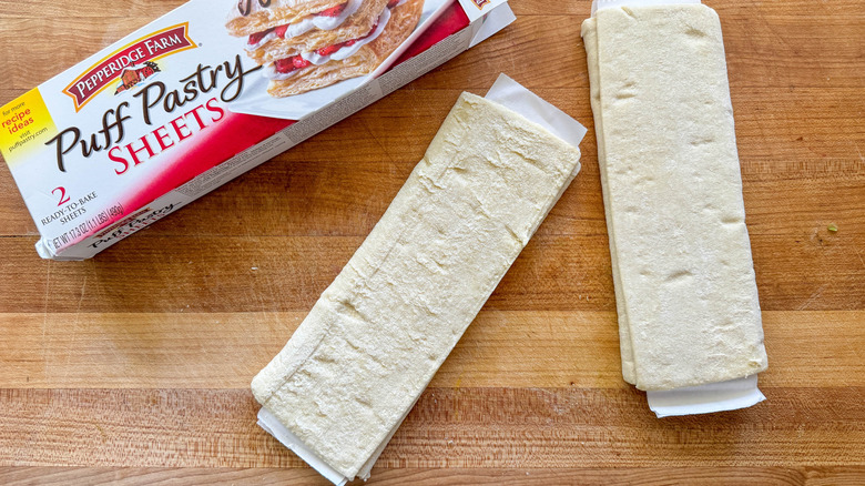 - Remove the puff pastry from the package and let it thaw according to package directions.