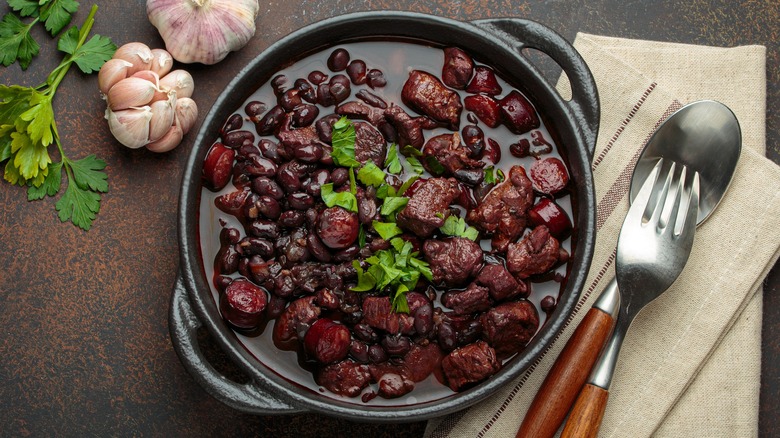 Another meaty ingredient you should have in your arsenal is ham hocks, which will elevate a pot of beans into a hearty main dish with Southern flair. You might need to cook the ham hocks first until they are very tender, then shred the meat off the bones and add it to the beans alongside some of the cooking liquid. These will impart such a smoky and rich flavor to the beans that you'll forget they came out of a can in the first place.
