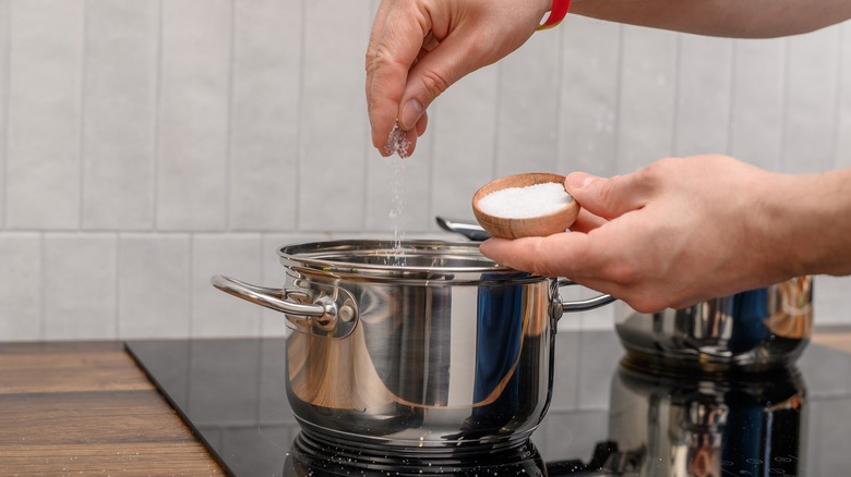 Whether you're cooking pasta or boiling potatoes, it's a fairly common practice to add a generous pinch of salt to your water as it boils. The main purpose of this step is often to help flavor your ingredients as they cook, stopping them from tasting flat and bland once you drain them. However, you may have also heard that adding salt to hot water makes it boil quicker, but the fact is, though there might be a slight element of truth behind the principle of this claim, the difference that salt makes to hot water in terms of bringing it to a boil quicker is negligible, and you most likely will not notice a difference whether you add salt or not.