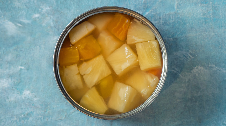 For a tropical-inspired treat, try mixing some canned pineapple into your next smoothie. The fresh fruit is notoriously time-consuming to prepare, with its tough skin and large crown, and once diced, it tends to keep for only a few days in the fridge. But conveniently shelf-stable and pre-prepared canned pineapple will have you enjoying those bright, tangy flavors in no time.