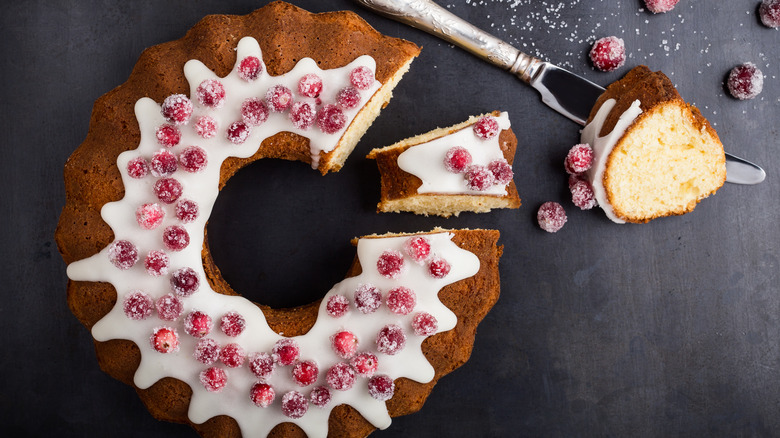 You can roll any berry in granulated sugar to make it look frosted or snowy. It's the perfect way to transform a cake recipe that would otherwise look a little too summery for the holiday season.