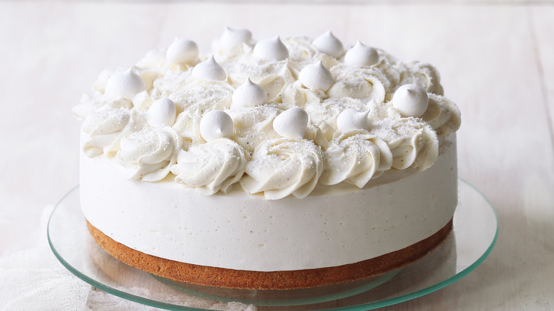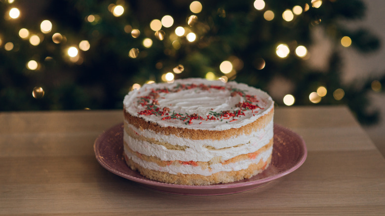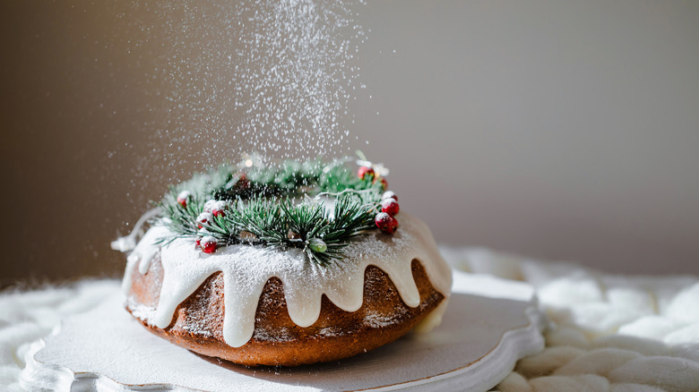 If you have no prior cake decorating experience and want to decorate your cake in a way that's super simple yet pretty, a little water (or milk) and powdered sugar will net you a gorgeous glaze you can drip from the top of your cake. Just pour the glaze starting from the center of your cake and gently spread it outwards with a knife or spatula. You can dye your glaze with colored food dye for a winter theme or even opt to spread multiple colors across the top of your cake for a holiday lights effect.