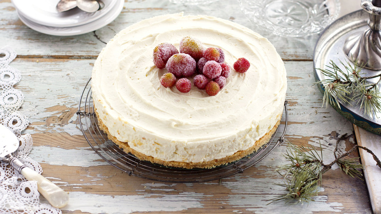 If you're not yet set on using powdered sugar to make your cake decorations look like a winter wonderland, granulated sugar can also help you add a wintery effect to your cake. Rolling small winter fruits like cranberries in granulated sugar will make them look as though they've been hit by a winter frost. It's a great way to make them shine and sparkle a little extra (and take away some of the bitterness).