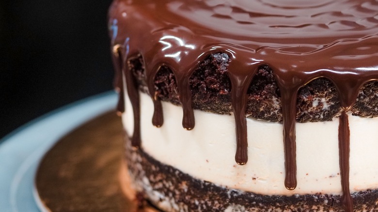 However, if you've already started frosting your cake and are noticing that the frosting is starting to fall off, put the whole thing in the fridge right away. You can take it out after a couple of hours to allow the cake to warm up a little bit, and by that point, your frosting will likely have hardened enough to be stable. Just don't forget to touch up your frosting as needed before serving.